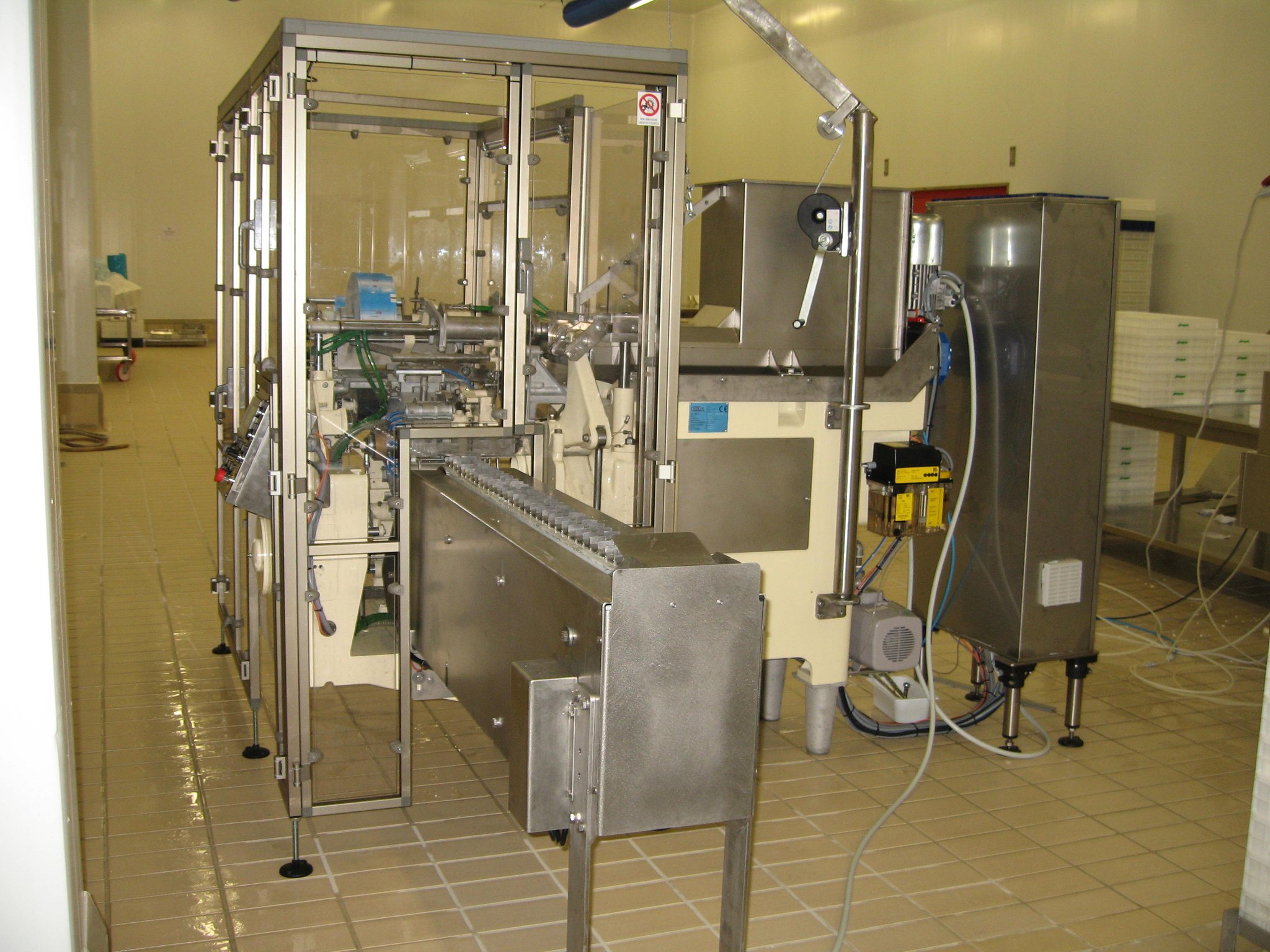 Macchina a ciclo automatico revisionata a nuovo ricavata da vecchia confezionatrice IMA e aggiornata con alimentazione e dosatore in acciaio inox aisi 316, catenaria estrazione caprino comandata da motore brushless