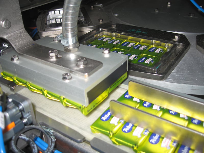 Macchina a ciclo automatico progettata per inserire porzioni hotel all'interno di contenitori in materiale plastico.